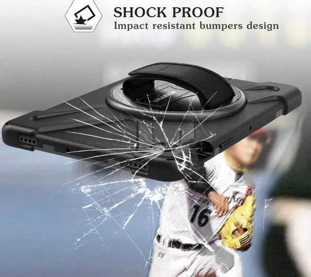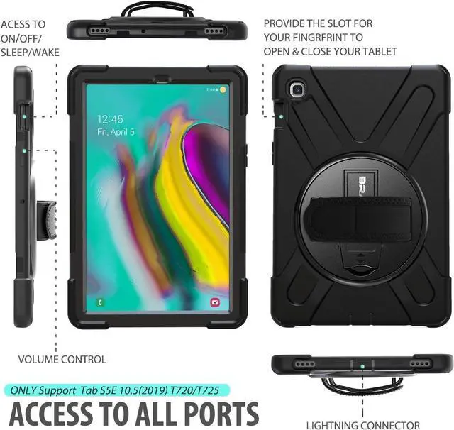 360° Rotating Handle/Stand: This Sam-sung Galaxy Tab S5e 10.5-inch case features a 360° rotating system that combines a stand and wrist strap. The rotating design allows you to hold the tablet at any angle, while the stand function provides stable support at multiple angles. The adjustable wrist strap enables secure one-handed grip, offering a more flexible and convenient way to use your tablet for outdoor adventures and work scenarios.