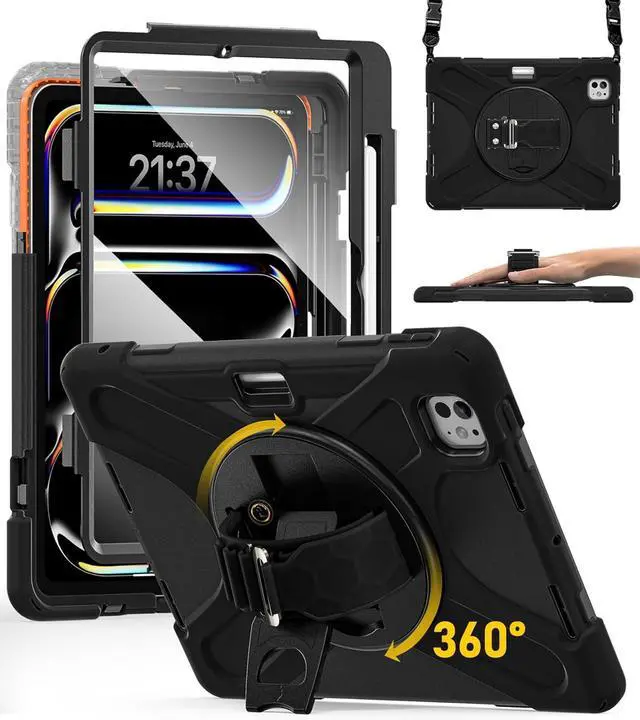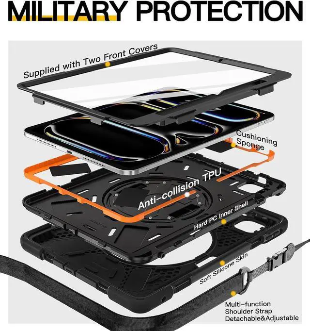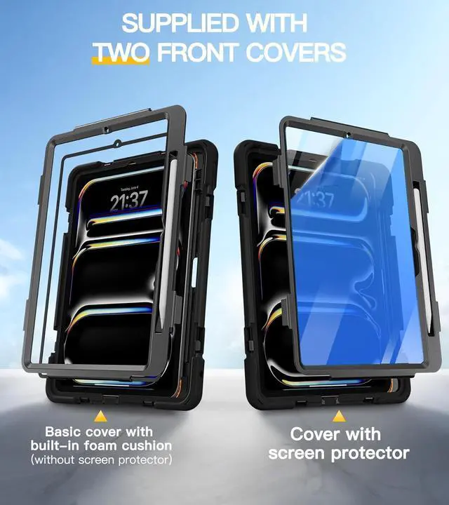 [Two Front Covers: One with Screen Protector]This rugged case for iPad Pro 11 inch (M5) 2025 &(M4) 2024 prevents screen scratches.Comes with two front covers, one with screen protector the other without (front cover without screen protector has extra foam cushioning), which can be replaced according to your needs.