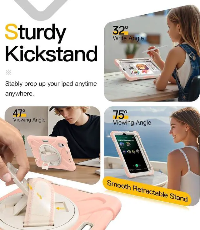 360° Rotating Kickstand & Soft Adjustable Handle Strap: iPad mini 6th Generation 8.3 inch 2021 case is perfect for kids / adults who watches videos in landscape or portrait mode with a 360° rotating kickstand for hands-free convenience. Our adjustable handling strap is made of premium soft fabric, allowing you to hold your iPad mini 7th (A17 Pro) Gen 2024 easily and comfortably only with one hand.