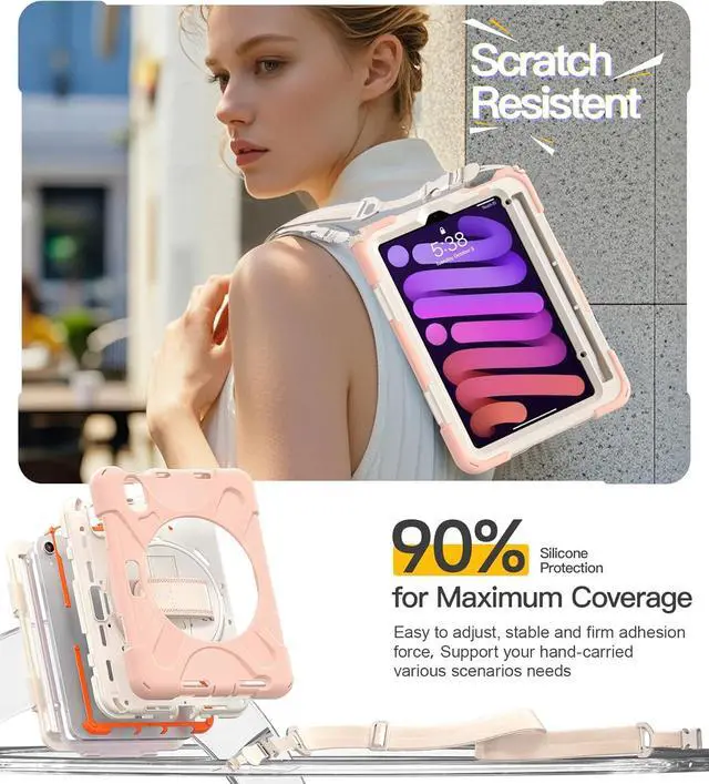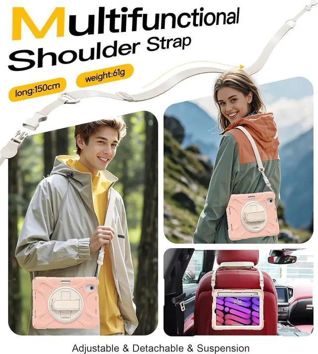 Detachable Shoulder Strap: With the detachable shoulder strap, you can carry your iPad mini 6th / 7th 8.3 inch tablet effortlessly while traveling or moving around. Keeps your iPad mini 7 A17 Pro 2024 away from dropping broken.