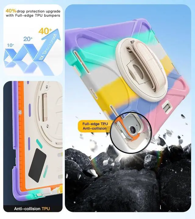 360 Rotating Stand & Hand Strap:Located on the back of the iPad Pro 11 inch 4/3/2/1st Gen shockproof case, the built-in 360 Rotating stand and hand strap with adjustable handle give you the flexibility and convenience you need to use your tablet at work, at school or on the go, making it ideal for students, teachers, engineers, cashiers and waiters, and more.