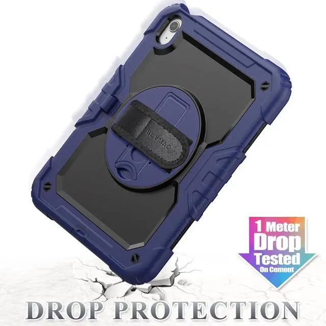 Case for iPad (A16) 11th/10th Generation 11''/10.9'' 2025/2022, Full-Body Drop Protection Case with Screen Protector &360° Rotate Hand Strap/Stand, Navy Blue