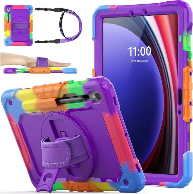 Case for SAM-SUNG Galaxy Tab S10 Lite / S10 FE / S9 FE 5G / S9 Tablet Case 10.9''/ 11'' Protective with Screen Protector, Pen Holder, 360 Rotate Stand, Hand Strap, Shoulder Strap, Purple
