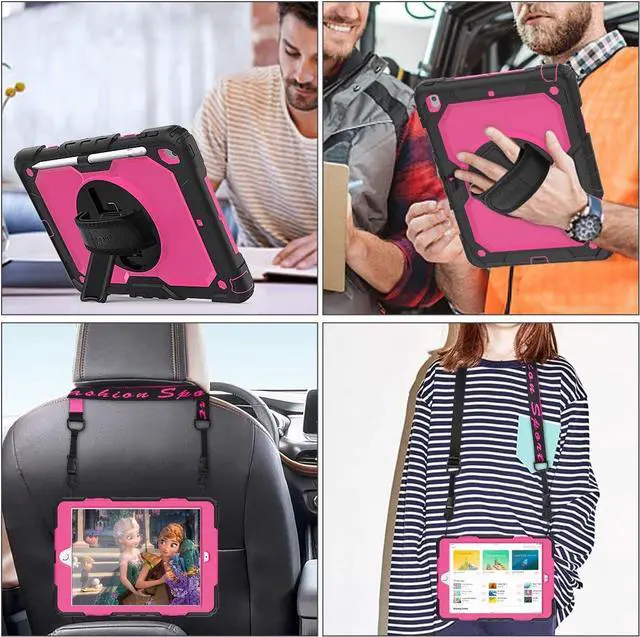 Soft Strap & Portable Shoulder Strap & Rotating Stand: Provide the protection and convenience when you play or work with iPad. Hang it anywhere for your entertainment, makes you using case for iPad 9th/8th/7th Generation easily. 360 Degrees rotating Kickstand provides convenient viewing, with soft strap, easy to use your case for iPad in your outdoor travelling, working, gaming with kids
