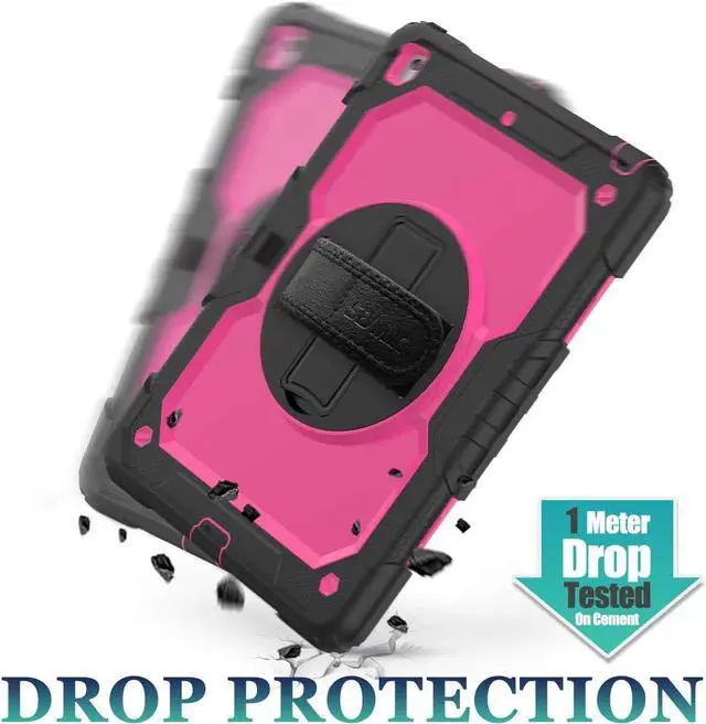 Case for iPad 9th/ 8th/ 7th Generation 10.2'', Shockproof with Screen Protector, Pencil Holder [360° Rotating Hand Strap] & Stand, for iPad 10.2 inch 2021-2019 (Rose+Black)