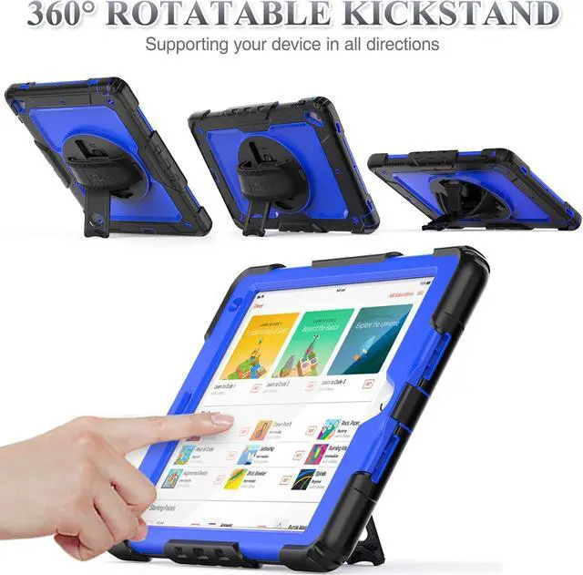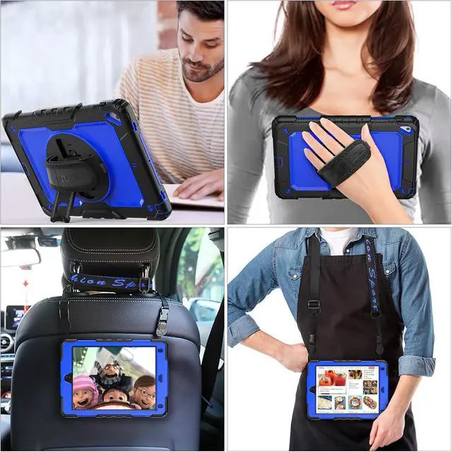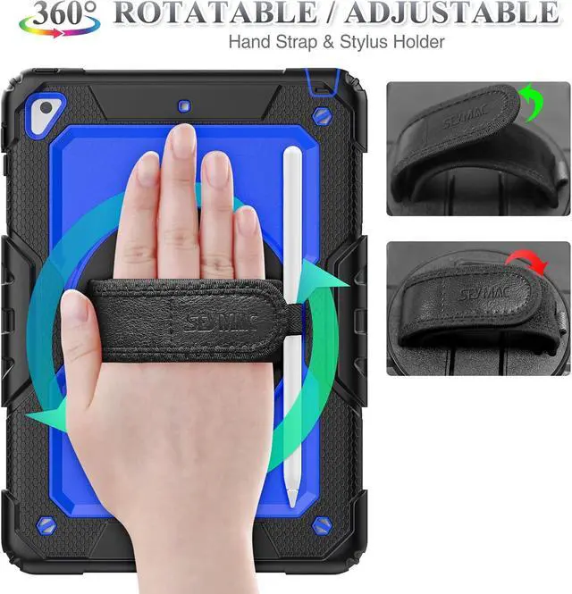 Soft Hand Strap & Portable Shoulder Strap & Rotating Stand: Provide the securest protection and more convenience when you play or work with case for iPad 6th/5th Generation; Hang it anywhere for better entertainment, make your hands free; 360 Degree rotating Kickstand provides multi-angle viewing, with soft handle strap, easier to use case for iPad 9.7 in outdoor travelling, working, gaming with kids