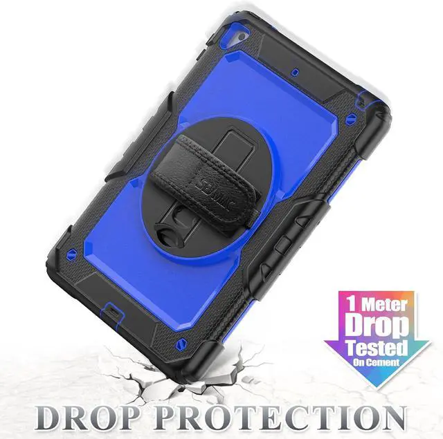 Case for iPad 6th / 5th Generation Case/Air 2 / Pro 9.7 inch, Heavy Duty Protective with Screen Protector, with Pencil Holder, Hand Strap, Shoulder Strap, 360 Rotate Stand, Blue+Black