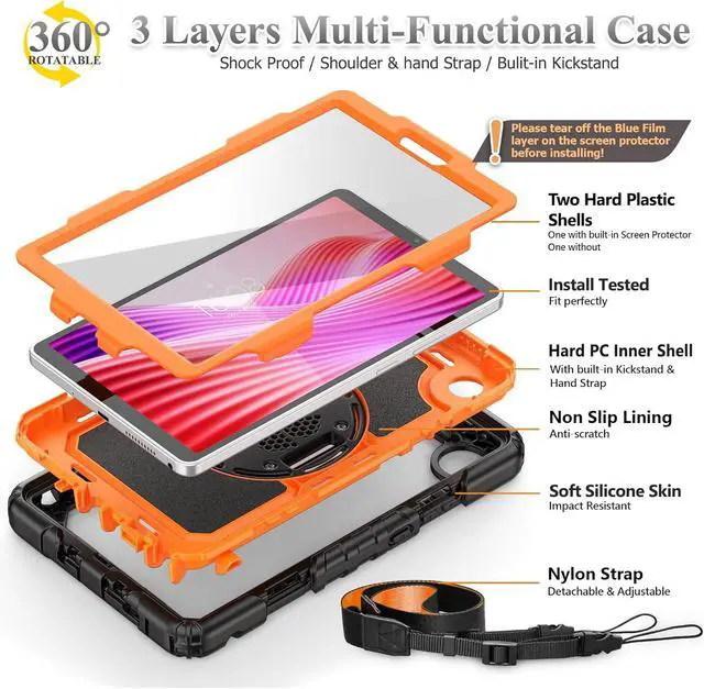 Material: The case for Len-ovo Tab One 8.7'' 2025 / Tab K9 is made from high-grade PC and anti-skidding silicone as well as built-in screen protector, creating the full-body protection. Not only shockproof and long-lasting but also comfortable hand feeling