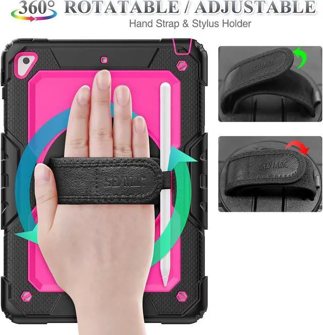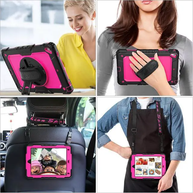 Soft Hand Strap & Portable Shoulder Strap & Rotating Stand: Provide the securest protection and more convenience when you play or work with case for iPad 6th/5th Generation; Hang it anywhere for better entertainment, make your hands free; 360 Degree rotating Kickstand provides multi-angle viewing, with soft handle strap, easier to use case for iPad 9.7 in outdoor travelling, working, gaming with kids