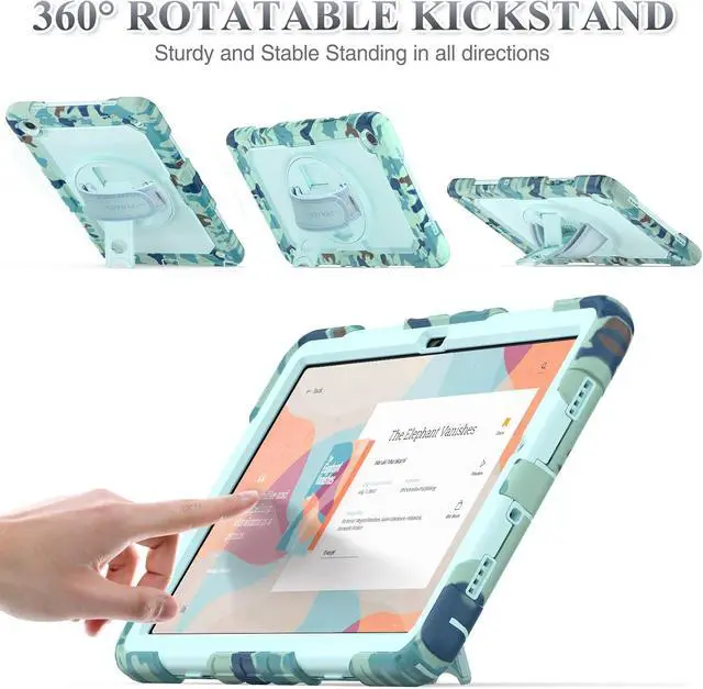 Rotating Hand Strap / Stand Provide the securest protection and more convenience when you play or work with Galaxy Tab A9 Plus. Its 360° Rotating Kickstand, can provides 30°-45°-60° viewing/drawing/video/typing angles. With soft handle strap, easier to use your tablet at home or outdoor working, studying, gaming for kids &adults