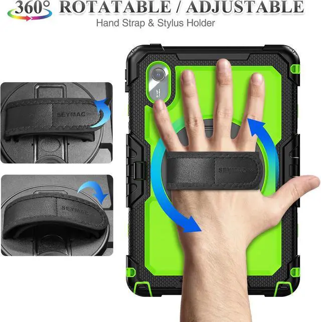 360 degree Rotating Stand + Hand Strap & Portable Shoulder Strap: 360 Degree rotating Kickstand provides multi-angle viewing, with soft handle strap, provide protection and convenience when use and study. With Shoulder Strap to hang to make hands be free-of