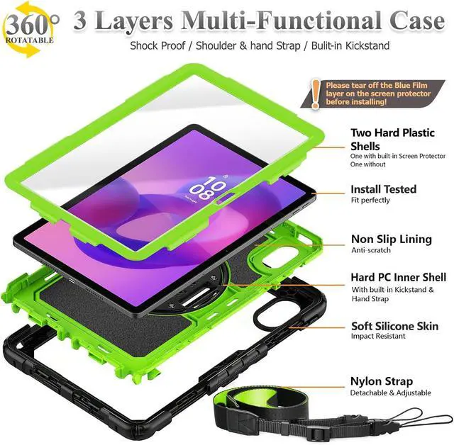 Material: The case for Len-ovo Idea Tab 11''/Tab M11/K11 is made from high-grade PC and anti-skidding silicone as well as built-in screen protector, creating the full-body protection. Not only shockproof and long-lasting but also comfortable hand feeling