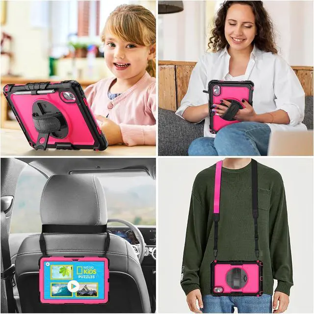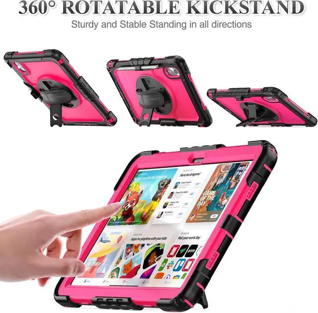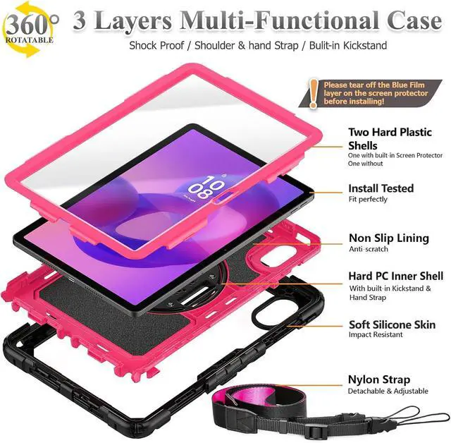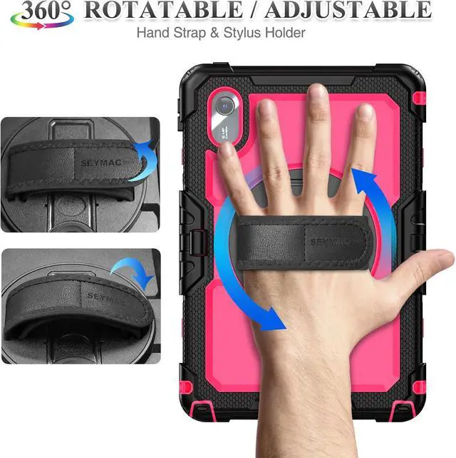 360 degree Rotating Stand + Hand Strap & Portable Shoulder Strap: 360 Degree rotating Kickstand provides multi-angle viewing, with soft handle strap, provide protection and convenience when use and study. With Shoulder Strap to hang to make hands be free-of