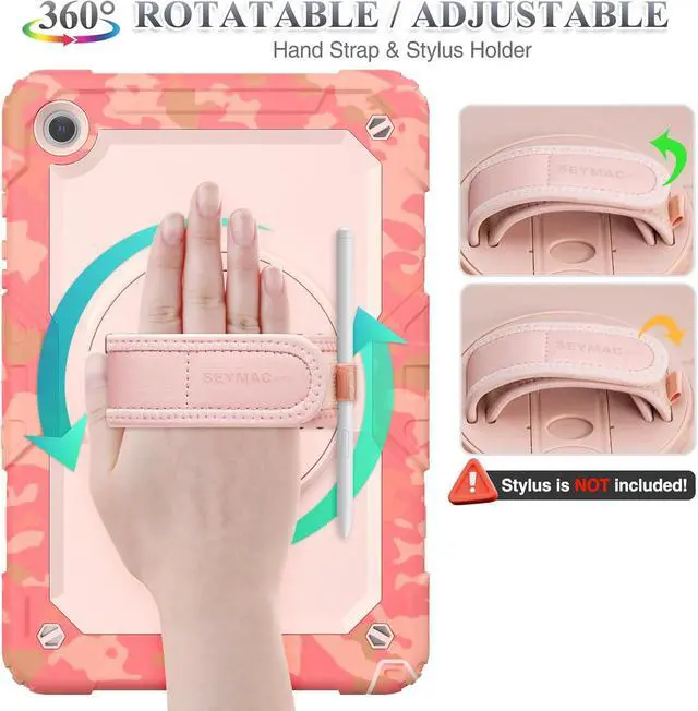 Rotating Hand Strap / Stand Provide the securest protection and more convenience when you play or work with Galaxy Tab A9 Plus. Its 360° Rotating Kickstand, can provides 30°-45°-60° viewing/drawing/video/typing angles. With soft handle strap, easier to use your tablet at home or outdoor working, studying, gaming for kids &adults