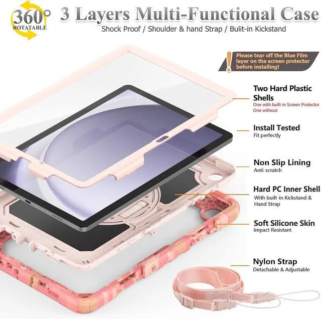 Full Protection+Screen ProtectorWith Shock-absorbing protecting Technology, to create the full-body protection for your Galaxy tab a9 plus 11''. Well against hits, drops, shocks and bumps. With built-in screen protector. Not only shockproof/long-lasting but also comfortable hand feeling