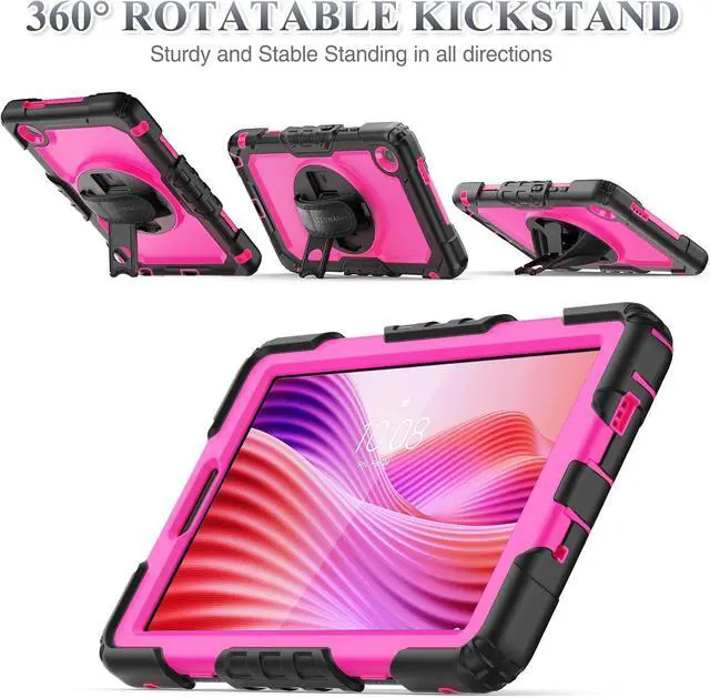 Tablet Case for Len-ovo Tab One (TB305FU) 8.7 inch Drop-Proof Protection Cover with 360° Rotate Stand & Strap [Pen Holder] & Screen Protector/K9 2025, Rose+Black