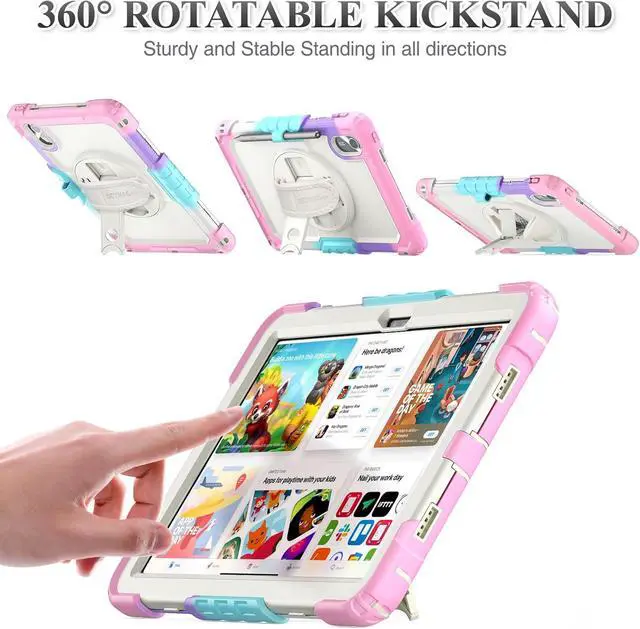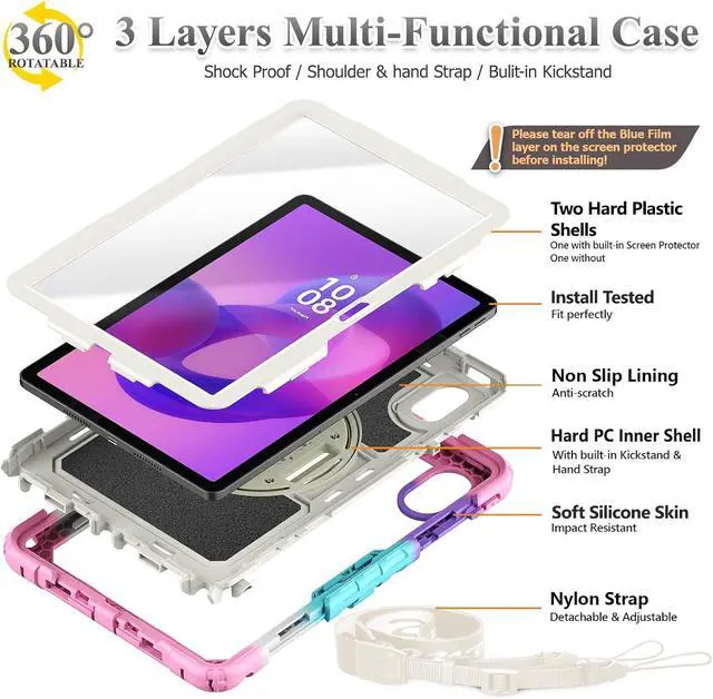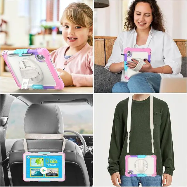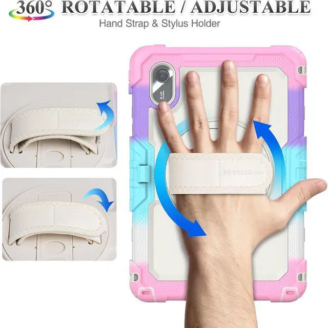 360 degree Rotating Stand + Hand Strap & Portable Shoulder Strap: 360 Degree rotating Kickstand provides multi-angle viewing, with soft handle strap, provide protection and convenience when use and study. With Shoulder Strap to hang to make hands be free-of