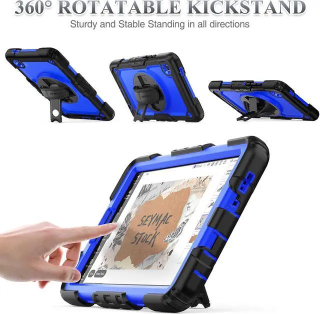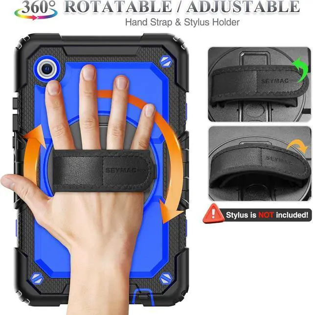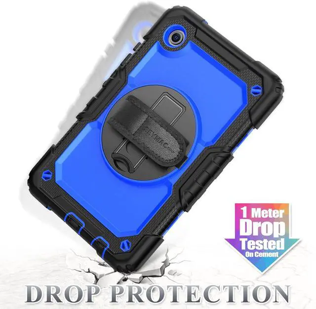 Case for SAM-SUNG Galaxy Tab A11 8.7'', Full-Body Drop Protection Case with Screen Protector Pencil Holder [360° Rotating Hand Strap] &Stand, Blue+Black