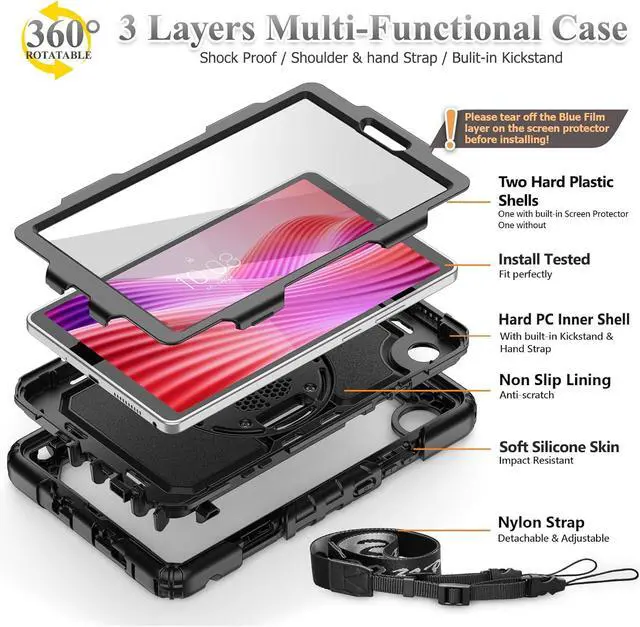 Material: The case for Len-ovo Tab One 8.7'' 2025 / Tab K9 is made from high-grade PC and anti-skidding silicone as well as built-in screen protector, creating the full-body protection. Not only shockproof and long-lasting but also comfortable hand feeling