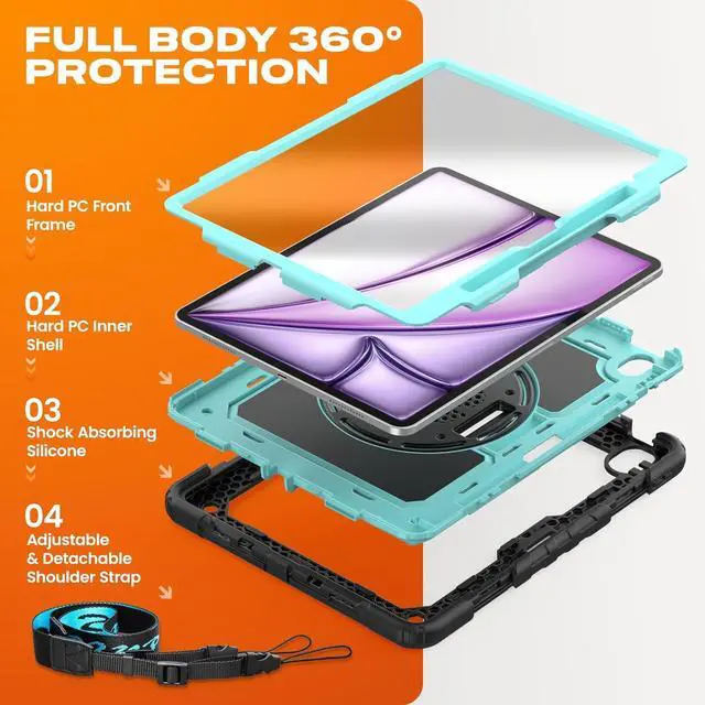 [Adjustable Hand & Shoulder Strap] Hold device comfortably one-handed with soft hand strap for presentations, navigation, document scanning; Adjustable,Detachable shoulder strap for a wide-range of users, carry your device by side and hands-free at all times, case for iPad Air 13 inch M4 M3 M2 suited for business/travel
