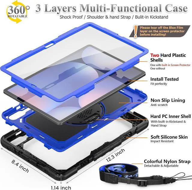 The case allows easy access-to all buttons, controls and ports without removing the case for Galaxy Tab S10 Plus/ S9 FE Plus/ S9 Plus 12.4'' from the case; Shock-prevention keeps away from shocks, case's port covers keep dust from entering into your case for SAM-SUNG large tablet