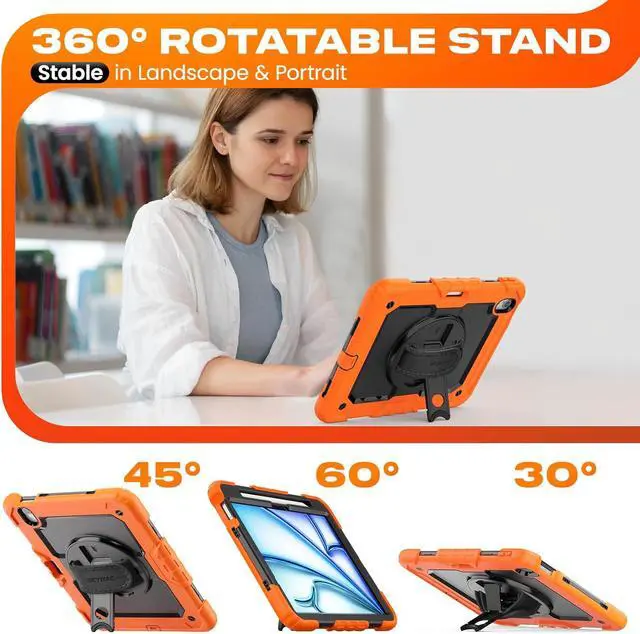 [Versatility Stand & Pencil Holder] With 360° rotating adjustable kickstand stable at multi-angles, case for iPad Air 11 inch M4 M3 M2 for viewing, typing or movie watching; With pencil holder easy storage for note-taking, case for 11-inch iPad Air case suited for classes/meetings, works or play with-kids