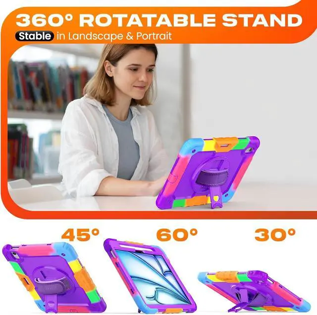 [Versatility Stand & Pencil Holder] With 360° rotating adjustable kickstand stable at multi-angles, case for iPad Air 11 inch M4 M3 M2 for viewing, typing or movie watching; With pencil holder easy storage for note-taking, case for 11-inch iPad Air case suited for classes/meetings, works or play with-kids