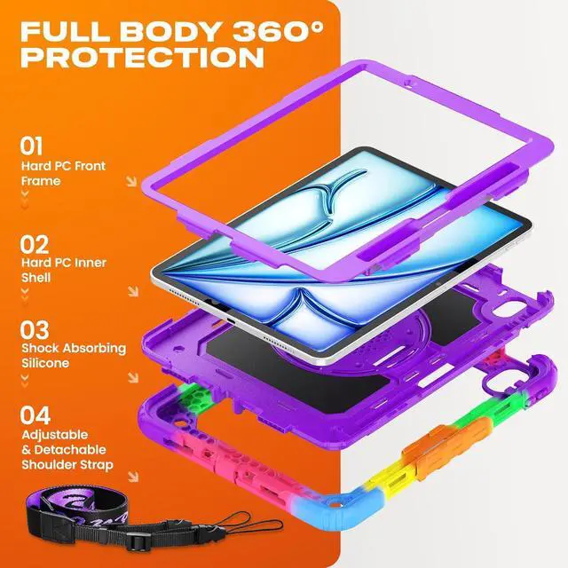 [Compatibility] Shockproof Case only for iPad Air 11 inch M4 2026/ M3 2025/ M2 2024 (11-inch Air 8th/7th/6th Generation), Model: A3266/ A3267/ A3270/ A2902/ A2903/ A2904. Please confirm the model before purchase this case for iPad Air 11