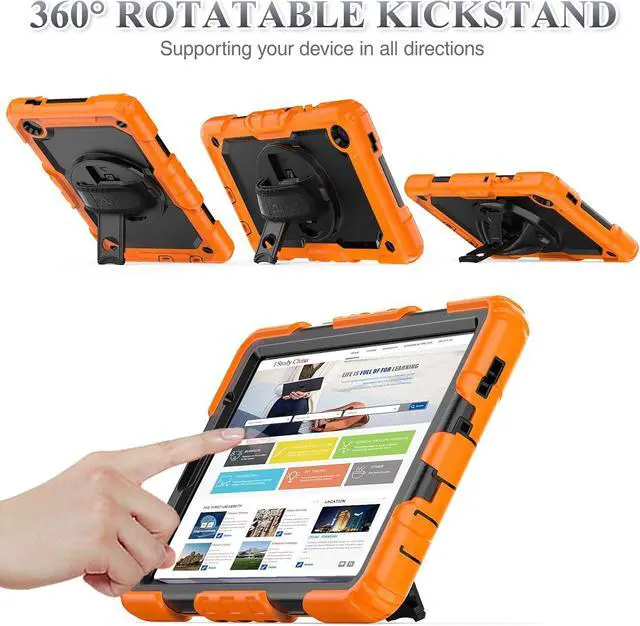 Case for SAM-SUNG Galaxy Tab A7 Lite 8.7'' with Screen Protector Pencil Holder [360 Rotating Hand Strap] &Stand, Drop-Proof Case for SAM-SUNG A7 Lite 2021 SM-T220/T225/T227, Orange/Black