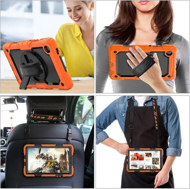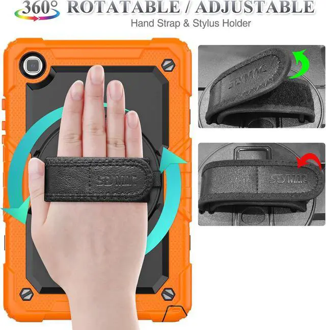 Soft Hand Strap & Portable Shoulder Strap & Rotating Stand: Provide the securest protection and more convenience when you play or work with case for galaxy a7 lite tablet case; Hang it anywhere for your better entertainment, make your hands-free; 360 Degree rotating Kickstand provides multi-angle viewing, with soft handle strap, easier to use your tablet in your outdoor travelling, working, gaming