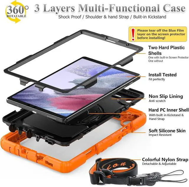Material: This case for Galaxy Tab A7 Lite SM-T220/T225/T227 case is made from thermoplastic polycarbonate and soft anti-skidding silicone, built-in screen screen protector to create the full-body protection for your tablet, Not only shockproof/long-lasting but also comfortable hand feeling