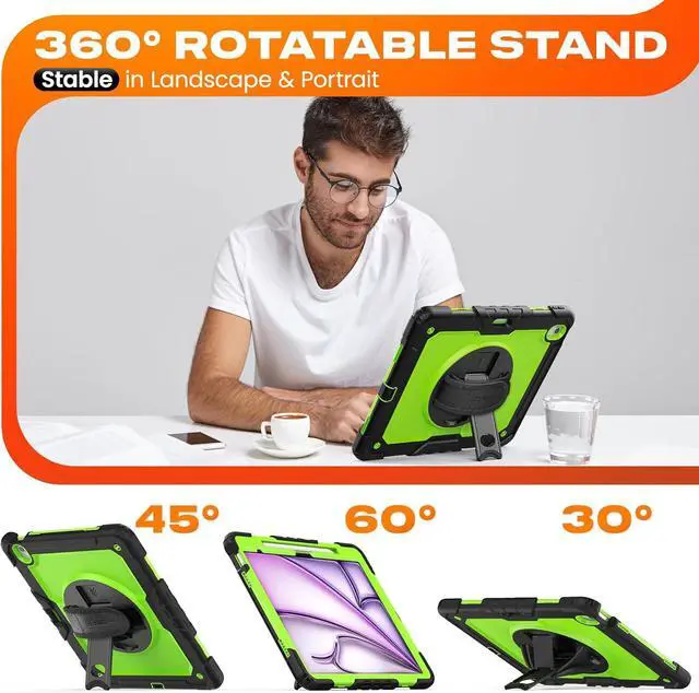 [Versatility Stand & Pencil Holder] With 360° rotating adjustable kickstand stable at multi-angles, case for iPad Air 13 inch M4 M3 M2 for viewing, typing or movie watching; With pencil holder easy storage for note-taking, case for 13-inch iPad Air case suited for classes/meetings, works or play with-kids
