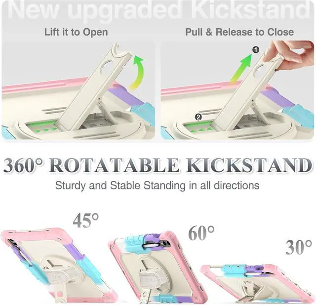 Soft Hand Strap & Portable Shoulder Strap & Rotating Stand: Provide the protection and convenience when you play or work with case for Galaxy Tab S10 Plus/ S9 FE Plus/ S9 Plus 5G, makes your hands-free; 360 Degrees rotating Kickstand provides multi-angle viewing, with soft hand strap, easy to use your case for SAM-SUNG S10+ Plus / S9 FE+ Plus / S9+ Plus Tablet while outdoor travelling, working, gaming