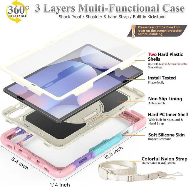Material: The New case for SAM-SUNG S10 Plus / S9 FE Plus/ S9 Plus Tablet case is made from premium TPU and anti-skidding silicone, built-in screen protector, to create the full-body protection for your case for Galaxy Tab S10 Plus/ S9 FE Plus/ S9 Plus 12.4''; Not only shock/-proof/long-lasting but also comfortable to hold