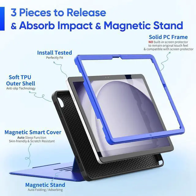 MATERIAL: The case for Galaxy Tab A9+/A9 Plus 11'' is made from high-grade soft thermoplastic polyurethane and PU leather hard PC frame & the lint lining protecting the display without scratch & dustproof Auto Sleep/Wake convenient cover
