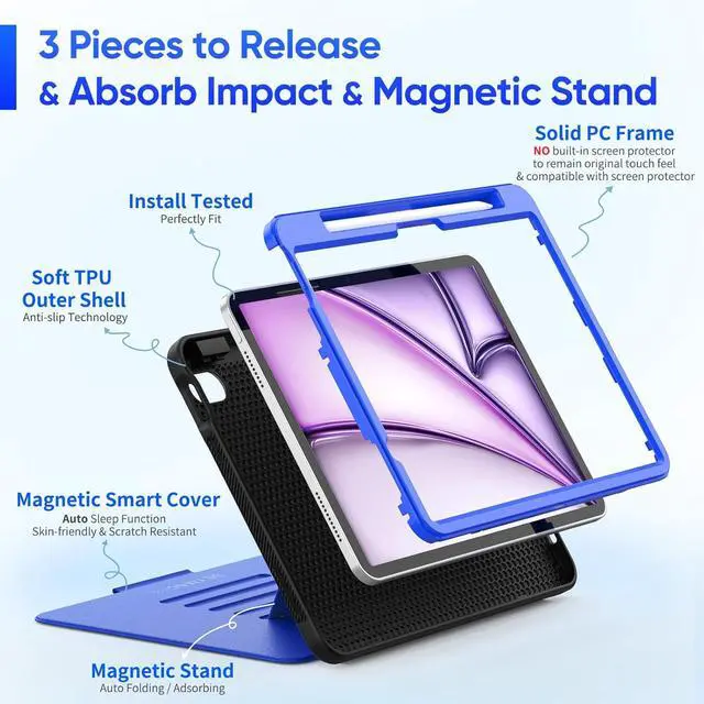 Multi-angles Stand with Magnetic: Case for iPad Air 11 inch (M2 chip) 2024 cover with magnetic-stand offering viewing with 7 adjustable angles for stability and convenience wherever you are. Case for iPad Air 11 2024 provides convenient viewing/typing angles for play, work, or stream.