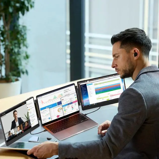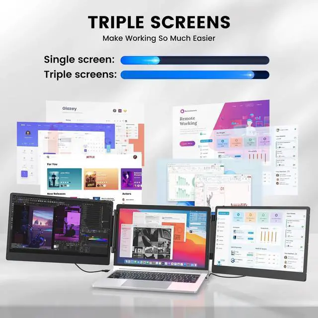 Triple Screen Efficiency: Triple Screen Laptop Monitor Extender is suitable for 13-inch - 16.1-inch laptops, providing two extra screens to increase work efficiency by 300%.
