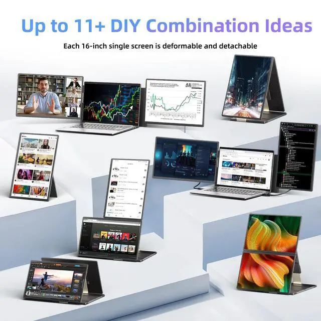 Detachable & Portable: Both screens are detachable and weigh only 2 lbs each, making them easy to carry for travel, remote work, and home office setups.