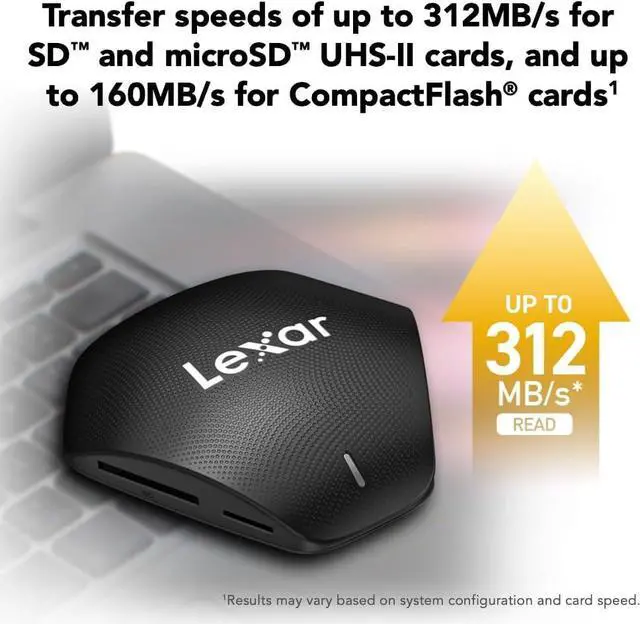 Supports SD microSD and CompactFlash cardsTransfer speeds of up to 312MB/s for SD and microSD and up to 160MB/s for CompactFlash cardsExtremely versatile multi-card reader with speedy file transfersBackwards compatible with SD and microSD UHS-I cards (up to 170MB/s)Compatible with USB 3. 1 and 2. 0 ports and comes with two-year limited warranty