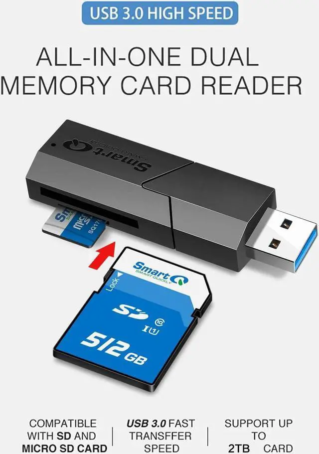 Multifunctional Design: This SuperSpeed 2-Slot USB 3.0 Flash Memory Card Reader features a 2-in-1 design supporting both SD cards and Micro SD cards. Its a versatile card reader that can handle two major types of storage cards including SDXC and MicroSDXC making it ideal for use with GoPro and drones.
