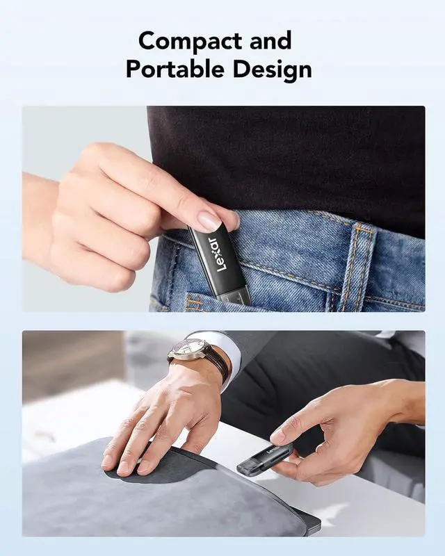 Quickly offload files with transfer speeds up to 104MB/s. USB 3.2 Gen 1 speeds for quick transfers. Dual slots one for SD cards and one for microSD cards. Supports cards up to 1TB. Stylish and portable design.