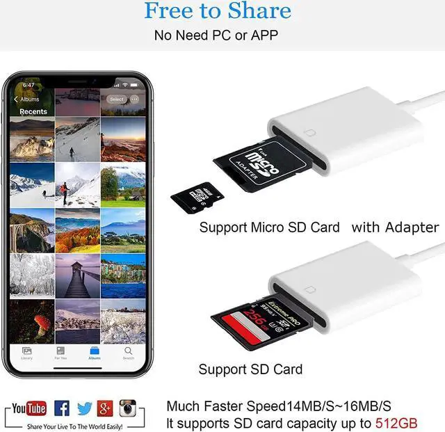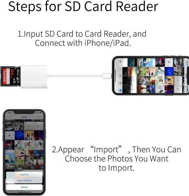 Lightning to SD Card Reader This lightning to sd card reader for iPhone iPad compatible with sd memory card with capacity up to 256GB support all iPhone iPad with iOS 9.2 or later. Universal Compatibility FUHAYA iPhone sd card reader supports standard photo formats (including JPEG and RAW) and SD/HD Video formats (including H. 264 and MPEG-4). For iOS 13 above users you can transfer not only photos and videos but also EXCEL WORD PDF files. Super High Speed Transmission The transmission speed of this iPhone iPad sd card reader is up to 14MB/S~16MB/S on iphone and ipad easily transfer your photos and videos of your camera to your iPhone/iPad in few seconds.