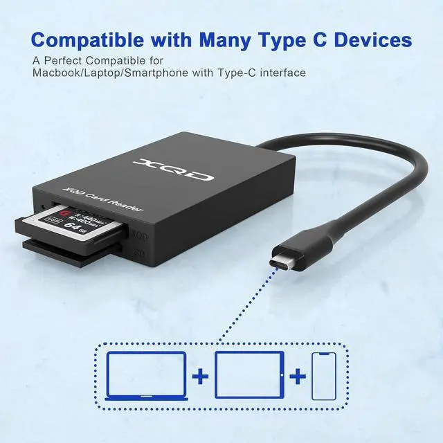 Improve your efficiencyUniversal Compatibility: It supports memory cards such as XQD card (Sony G/M series USB mark xqd cards Lexar 2933x Lexar 1400x USB mark xqd cards) and SD card (SDXC / SDHC / SD / Extreme III III SD / Ultra II SD / MMC). Allowing you to read and write on 2 cards simultaneously. Greatly save your time. Please note that our card reader is compatible only with XQD cards that utilize the USB protocol.