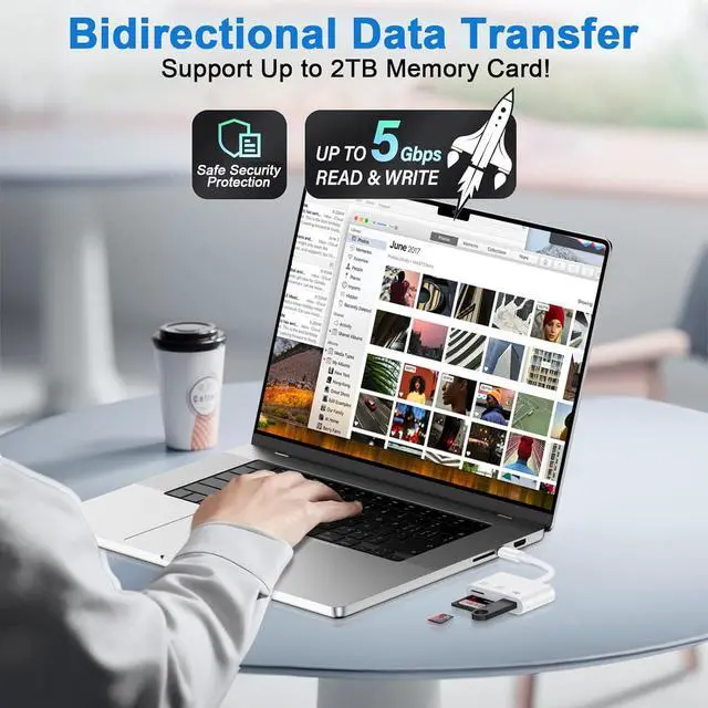 High-Speed Data Transfer: The sd card to usb c supports high speed data transfers of up to 5Gbps and has huge storage capacity of 2TB including JPEG and RAW files in addition to SD and HD video formats such as H. 264 and MPEG-4 codecs. SD card reader usb c is easily transfer images/videos from your camera onto other devices swiftly allowing you to share them on social media platforms anytime anywhere.