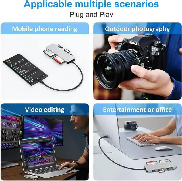 Compatibility: Compatible with Windows XP/Vista/7/8/ 8.1 /10/11 Mac OS Linux Chrome OS and etc. Plug & play hot-swapping capability; no external power supply required USB bus-powered easy and convenient to carry and use for photographer and videographerWhat