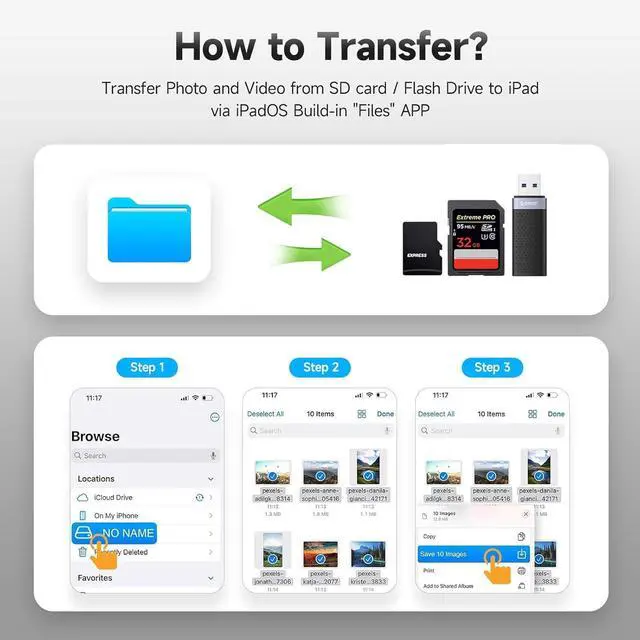 Note: Micro card cannot be read at the same time however SD/Micro card and USB device can be detected concurrently. High Speed Data Transfersd card reader for iphone 15 pro brings you the versatility and efficiency of reading a variety of memory cards. SD and Micro SD card reader is supported in USB 3.0 High Speed up to 90M/S usb-c sd card reader with high storage capacities of over 2TB usbc sd card reader allows you to swiftly inspect and backup files as well as save images and movies. micro sd card reader usb c is an excellent easy access for you to transfer files between multiple devices. Plug and Play This USB-C SD card reader is compatible with MacOS Windows Linux and iOS. No drivers no third-party software required plug and play very convenient and portable. For the iPhone15 16 you only need to use the iOS built-in Files app to import and export photos and videos. Wide CompatibilityThe USB C to SD Card Reader is applicable to most Type C smartphones/tablets such as for iPhone 17/16/15 Pro Max/16 Pro/16 Plus/16 Mac Book Pro/Air iMac Mac Mini after 2018 iPad Pro 2022/2021/2020 iPad Air 2022 Galaxy S20/S21/S22.