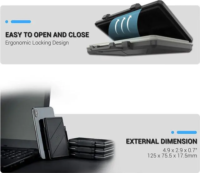 Protect memory card data: Each slot is strictly tailored to fit the card perfectly. Prevents memory cards from dust and loss. Protect your SD Micro SD from moisture and accidents and Keeps them organized in one place.