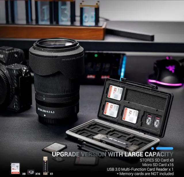 High Capacity: Can store Micro SD/SDXC/SDHC Card x 16 SD/SDHC/SDHC x 8 Memory Card Reader x 1. Meet the needs of sharing videos and photos anytime anywhere. Includes a USB 3.0