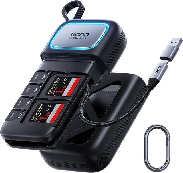 Card Reader & Storage:?? Combines a high-speed card reader with a protective case enabling?? simultaneous read/write?? for SD and Micro SD cards. Features?? secure locking slots?? to prevent card slippage with a compact design ideal for?? business travel vacations and outdoor photography??.