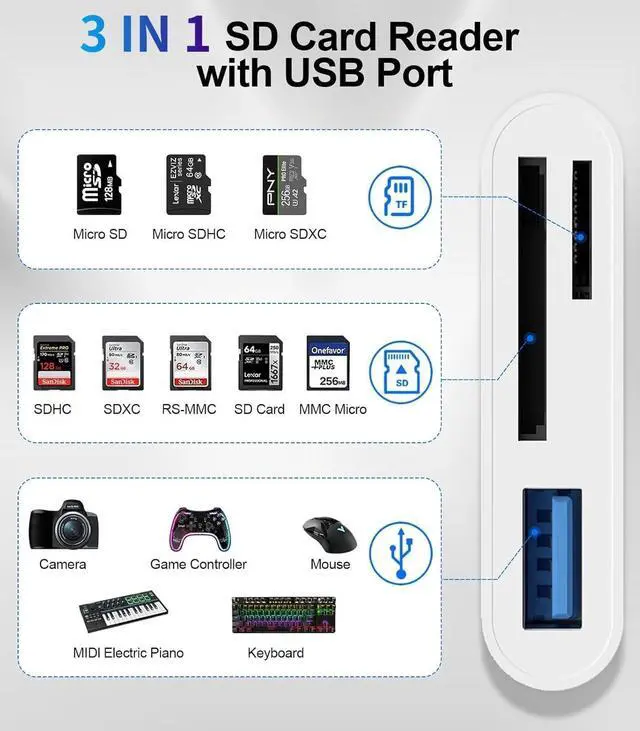 Compatibility: The SD Card viewer allows you to view multiple types of SD/TF cards easily anytime and anywhere. Compatible with SD SDHC SDHC SDXC Micro SD Micro SDHC Micro SDXC card. Support FAT32 and exFAT formats standard photo formats (JPEG & RAW) SD/HD video formats (H. 264 and MPEG-4)
